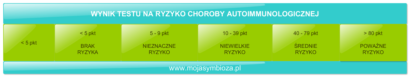 Znajdujesz się w dolnej części skali zagrożenia chorobą. Kilka czynników ryzyka zwiększa niebezpieczeństwo zachorowania na chorobę autoagresywną. Odpowiednia profilaktyka pomoże Ci obniżyć to ryzyko i zniwelować stany zapalne.