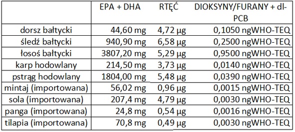 Pomimo tego, że niektóre ww. w tabeli gatunki mogą mieć małą zawartość rtęci, to jednak ryby hodowlane będą miały zawsze większą zawartość szkodliwych dioksyn i PCB (szczególnie panga, tilapia, łosoś polski i norweski).